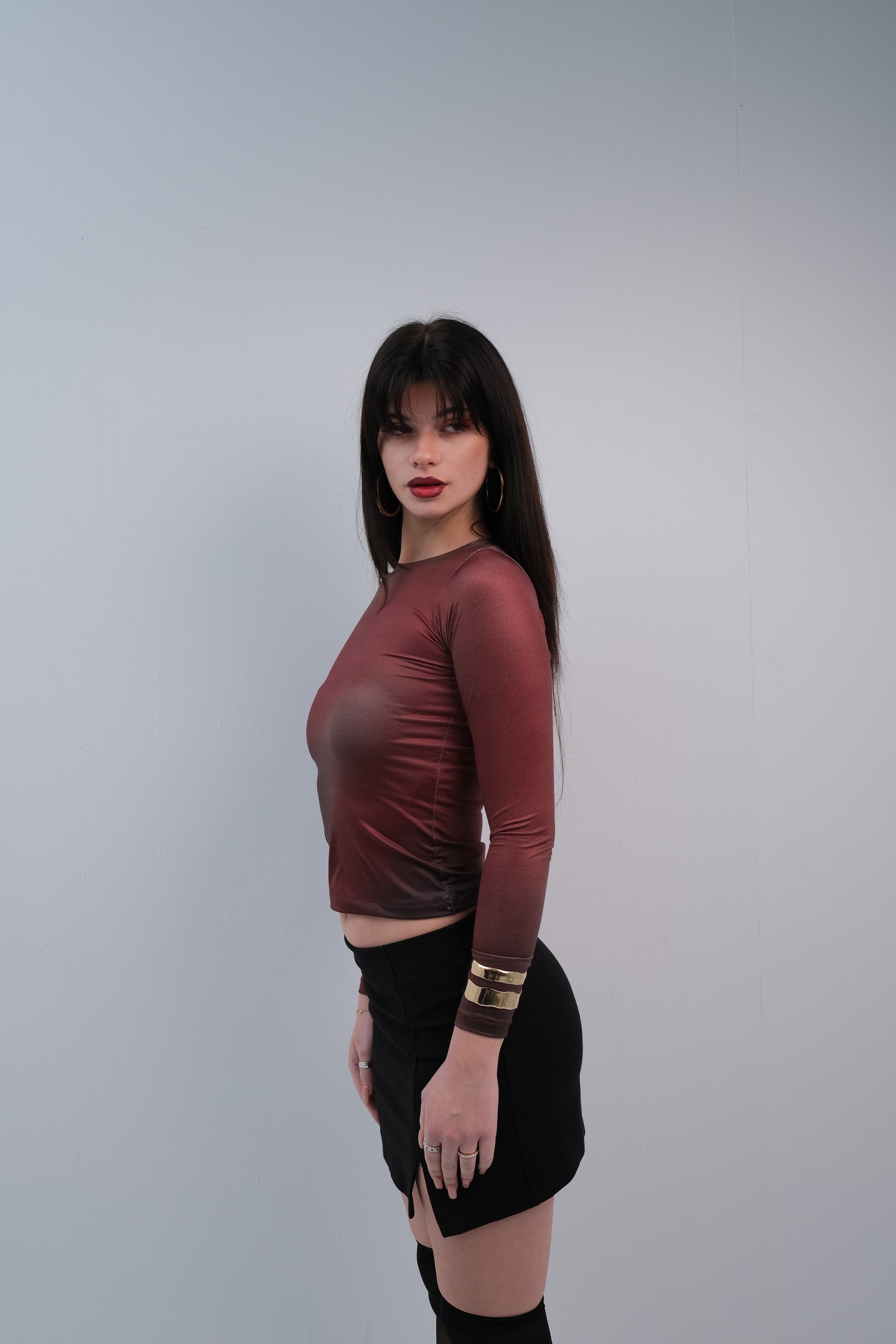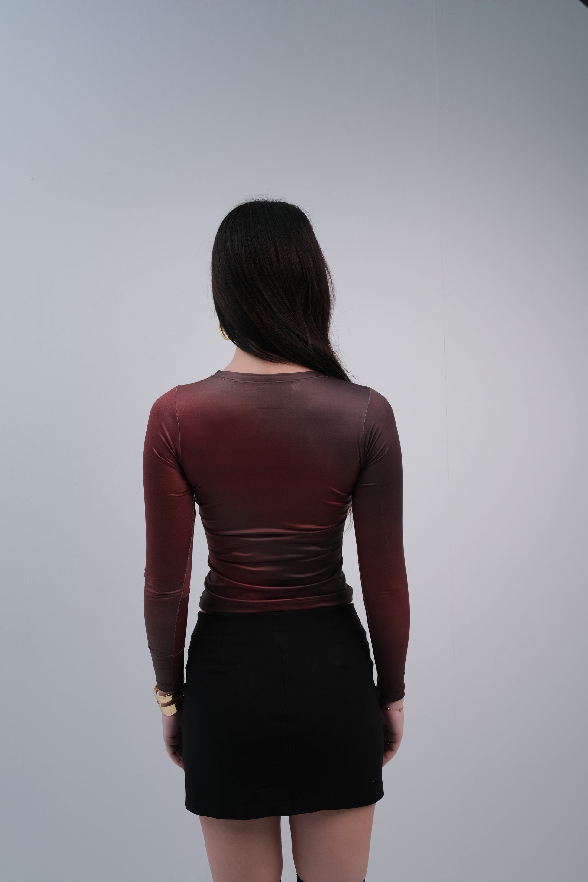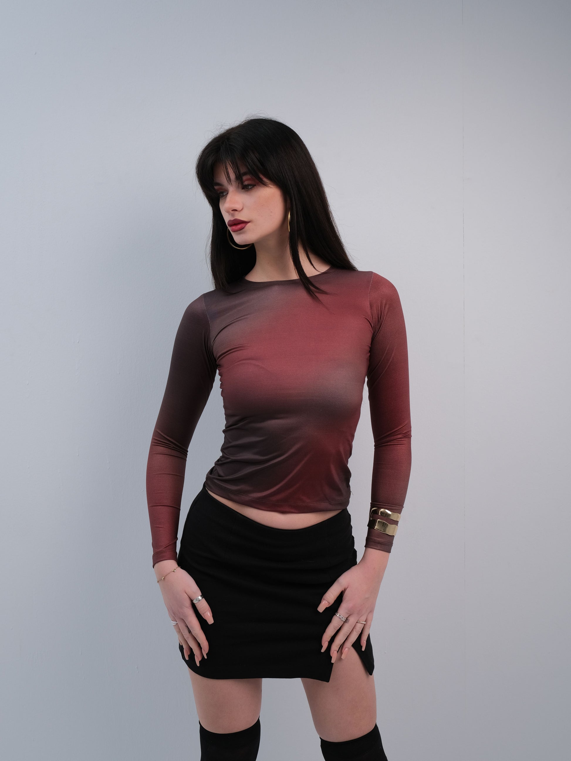 Sculpturing long sleeve top. Suitable for everyday wear and for styling up or down with the perfect gradient of colors.