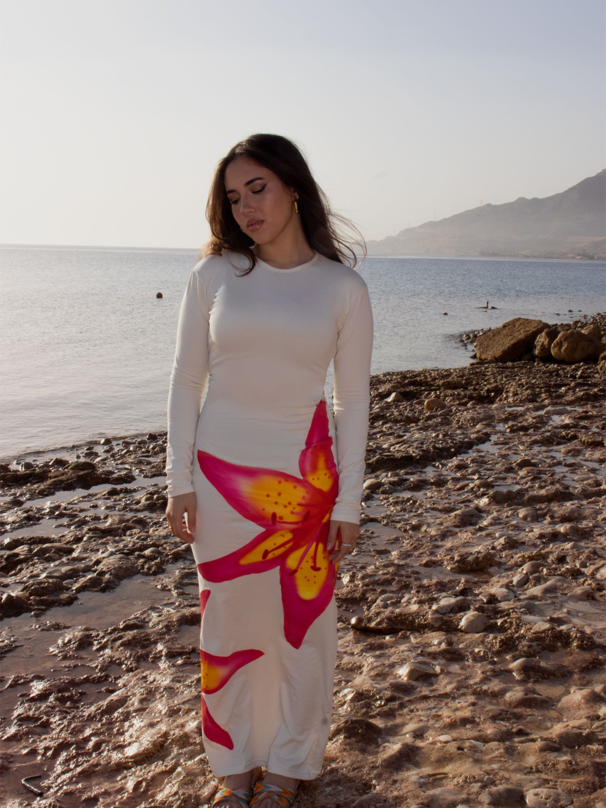 The long sleeve tropical dress suitable for casual and fancy occasions and be dressed up or down, suitable for modest/hijabis . made out of 100% egyptian cotton.